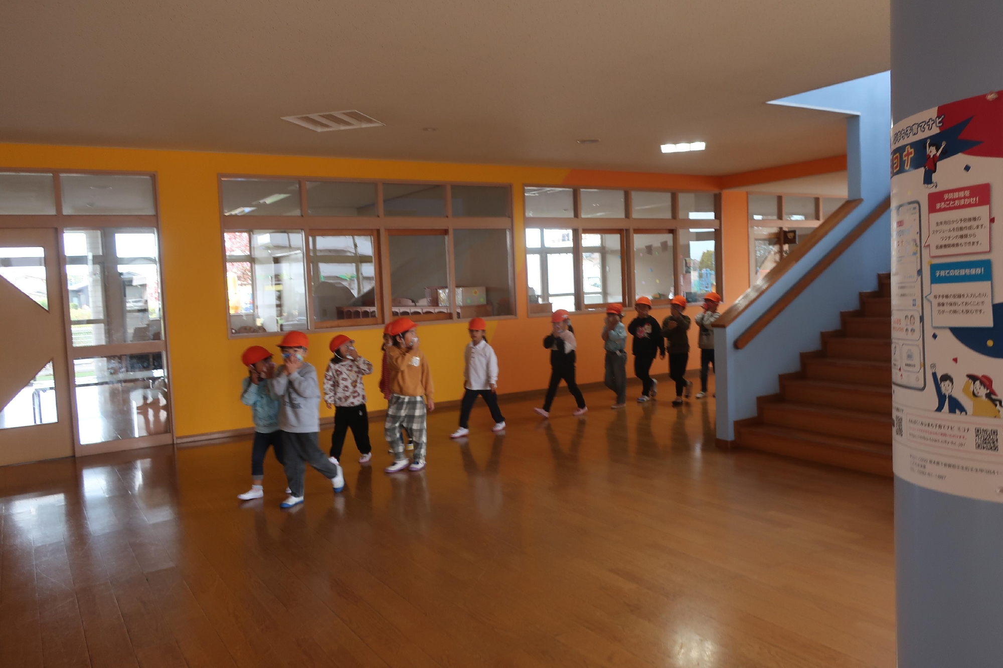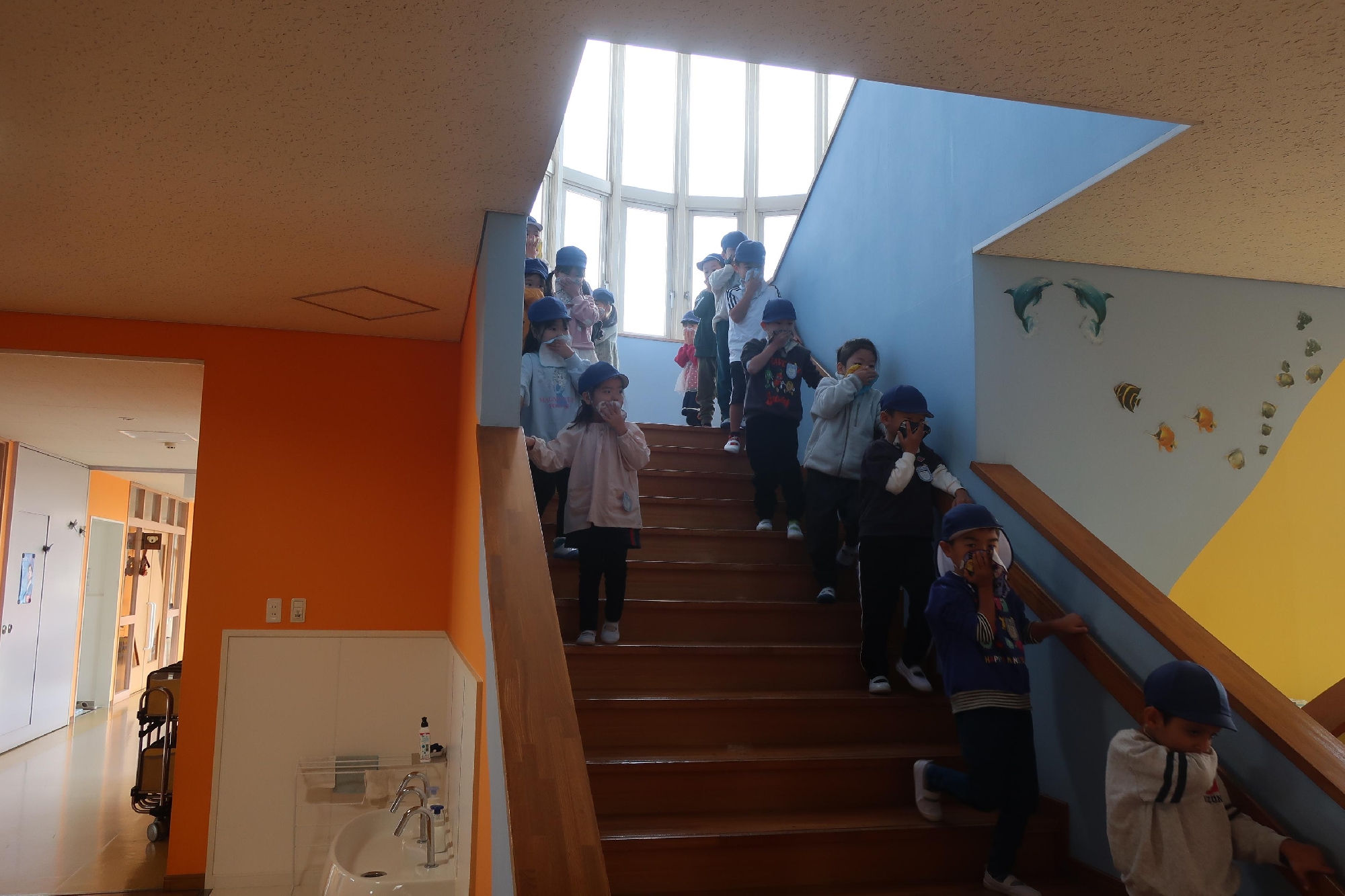 火災避難訓練がありました。子供達は口にハンカチをあてて静かに慌てずに移動することができました。