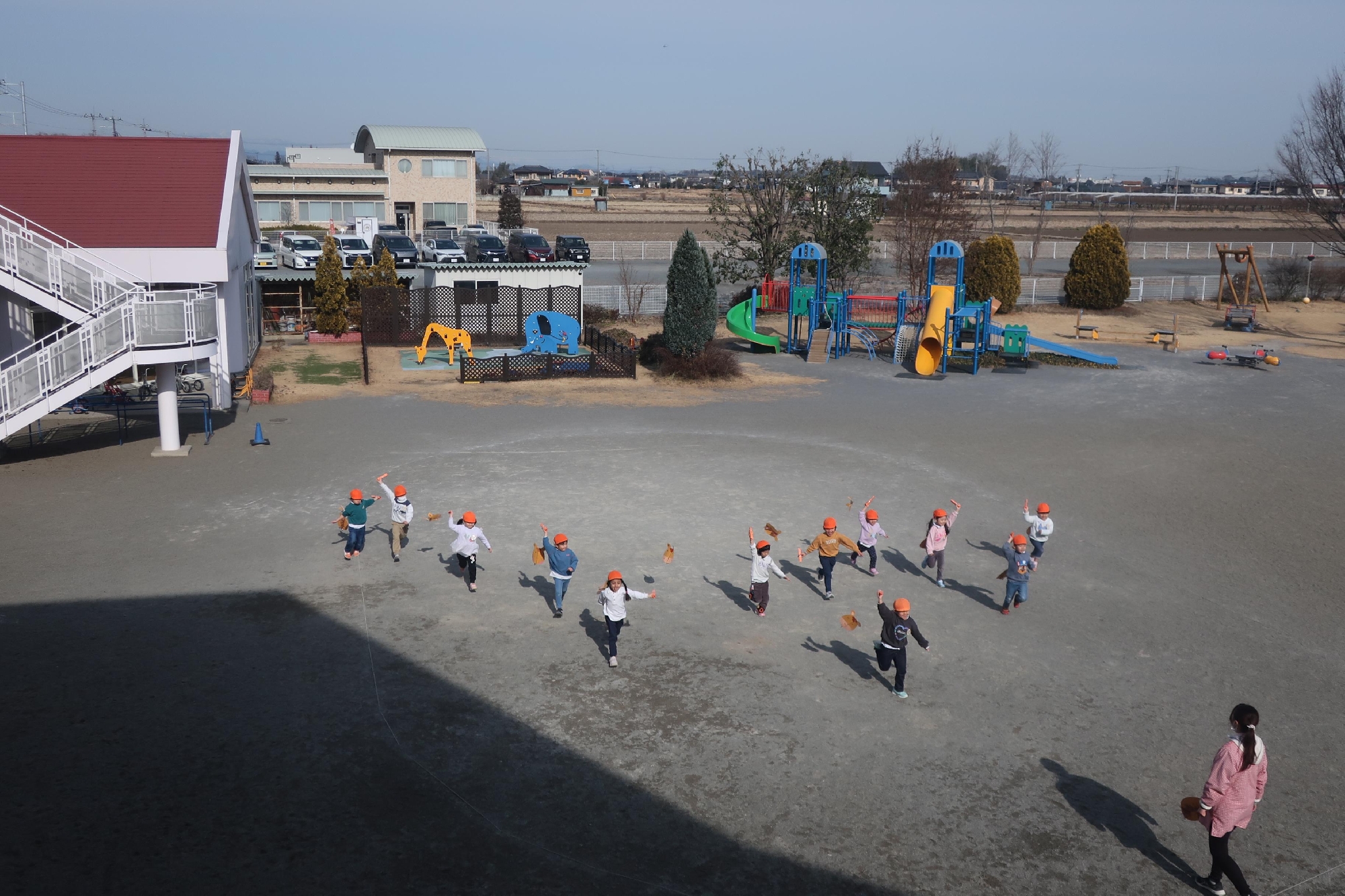 学年ごとにオリジナルの凧を作ってたこあげを楽しんでいます。風に乗って凧がよく上がっていました。